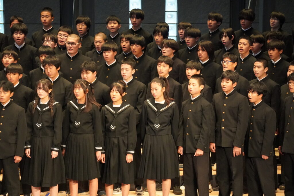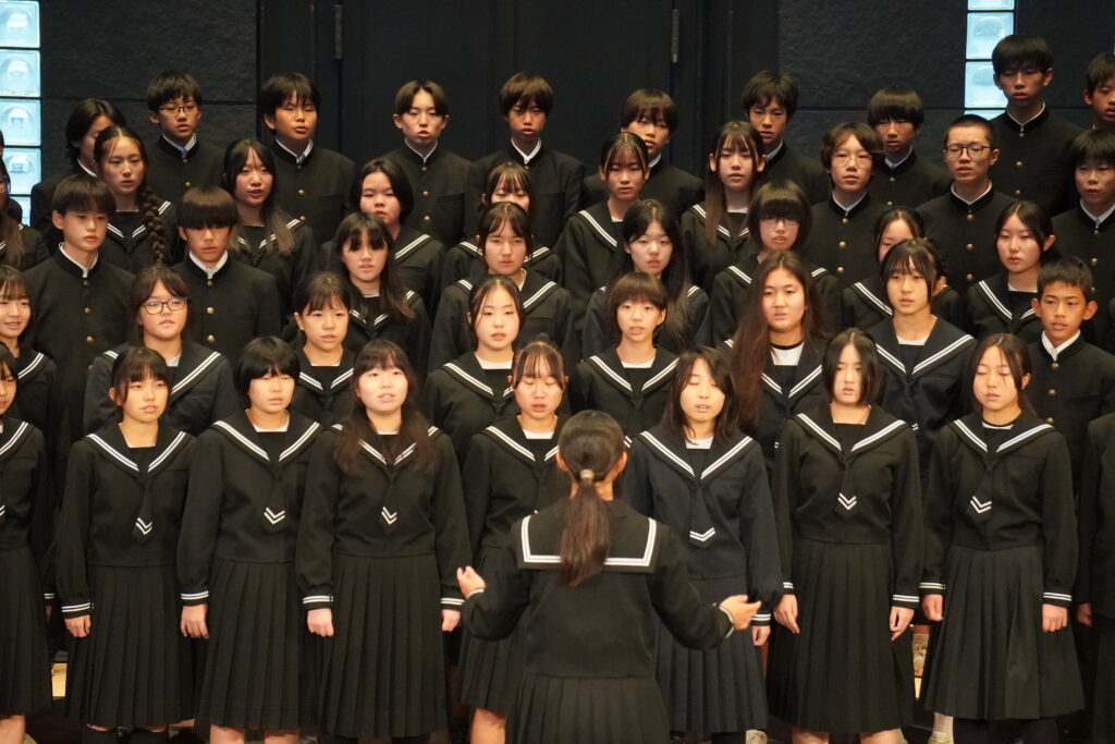 10/22 親善音楽会 投稿日 2025年11月7日 著者 webmaster 今年度は学校を代表して、2年生が合唱を2曲発表してきました。他の中学校も素晴らしい発表でしたが、湖南中2年生も堂々と素晴らしい合唱を発表していました。